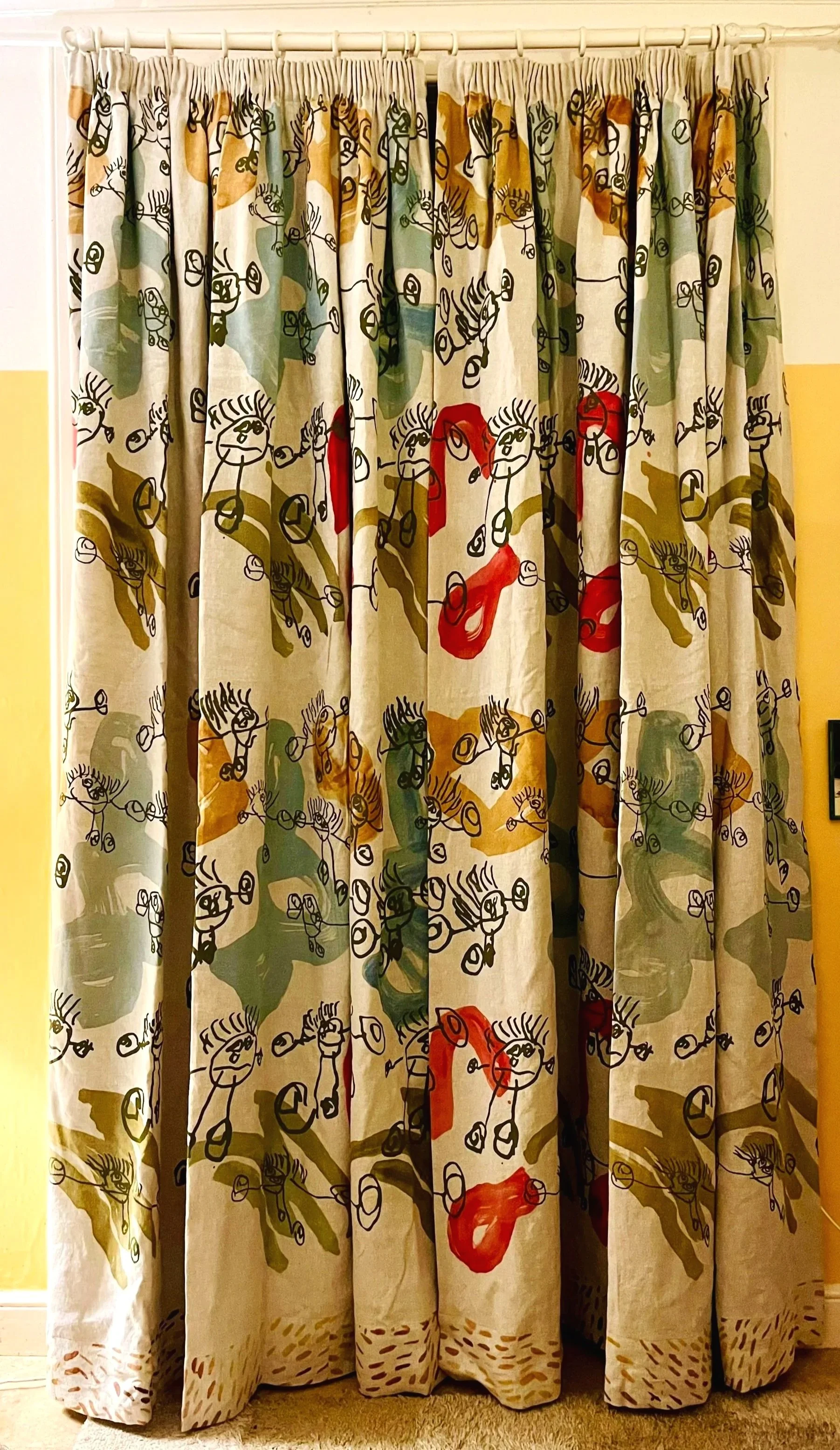 Custom linen curtains designed for my brother’s room, using his own drawings and marks as the core feature of the repeat pattern.
